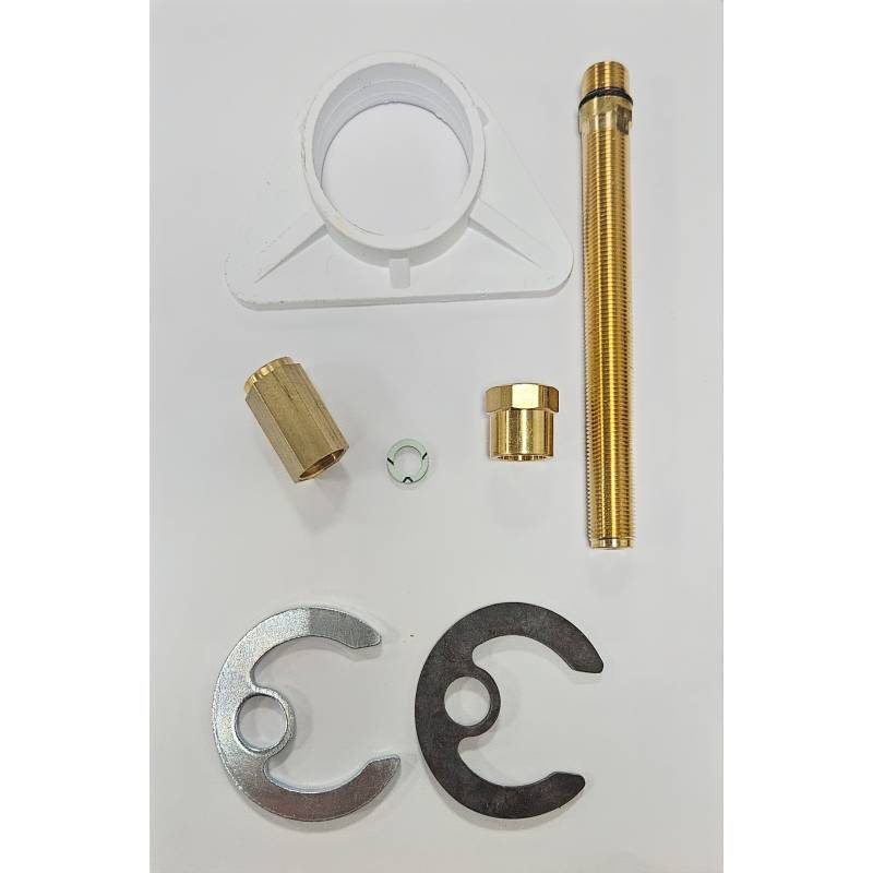 Water filter tap fixing kit for attaching a tap to a sink or worktop. Includes nut, bolt, half-moon support, washer and plastic brace.